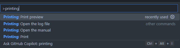 printingと入力するとプリント関係の機能が表示されま