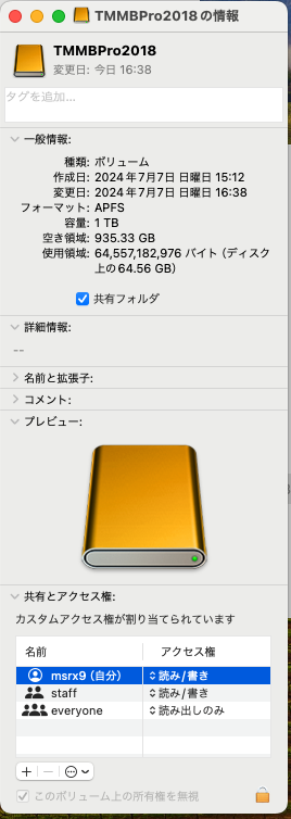 - 今回使用したHDDの容量は2TBなので、1TBずつAPFS形式で「TMMBPro2018」「TMMacMini2018」という名称でパーティションを切りました。